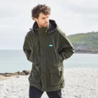 It features a large, detachable hood with a deep, wired peak for protection in the heaviest rain and harshest winds. The full-length front opening features a two-way zip and is protected by a thick storm flap.